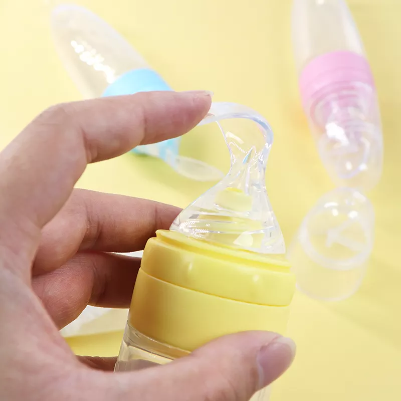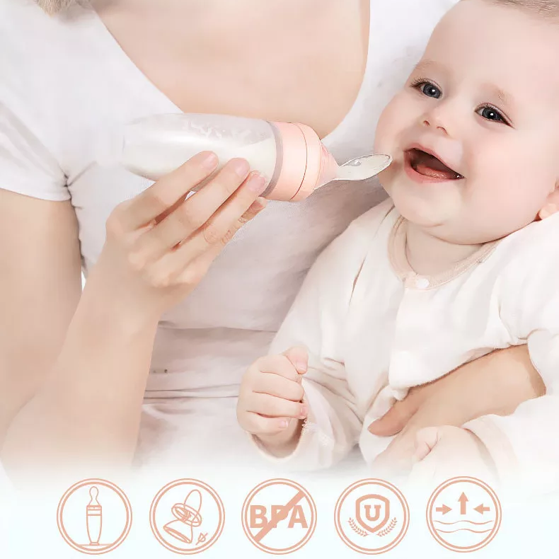 🔹 قابلیت فشاری برای کنترل مقدار خروجی: با فشردن مخزن، مقدار مناسبی از غذا خارج میشود و تغذیه کودک راحتتر خواهد بود.