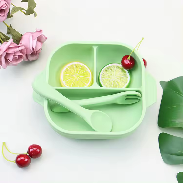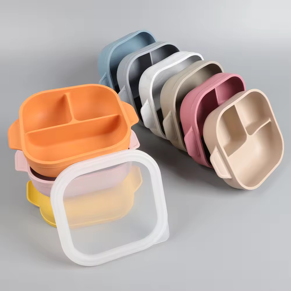 بشقاب مربعی سیلیکونی با درپوش: تجربهای جذاب و ایمن برای غذا خوردن! 🍽️