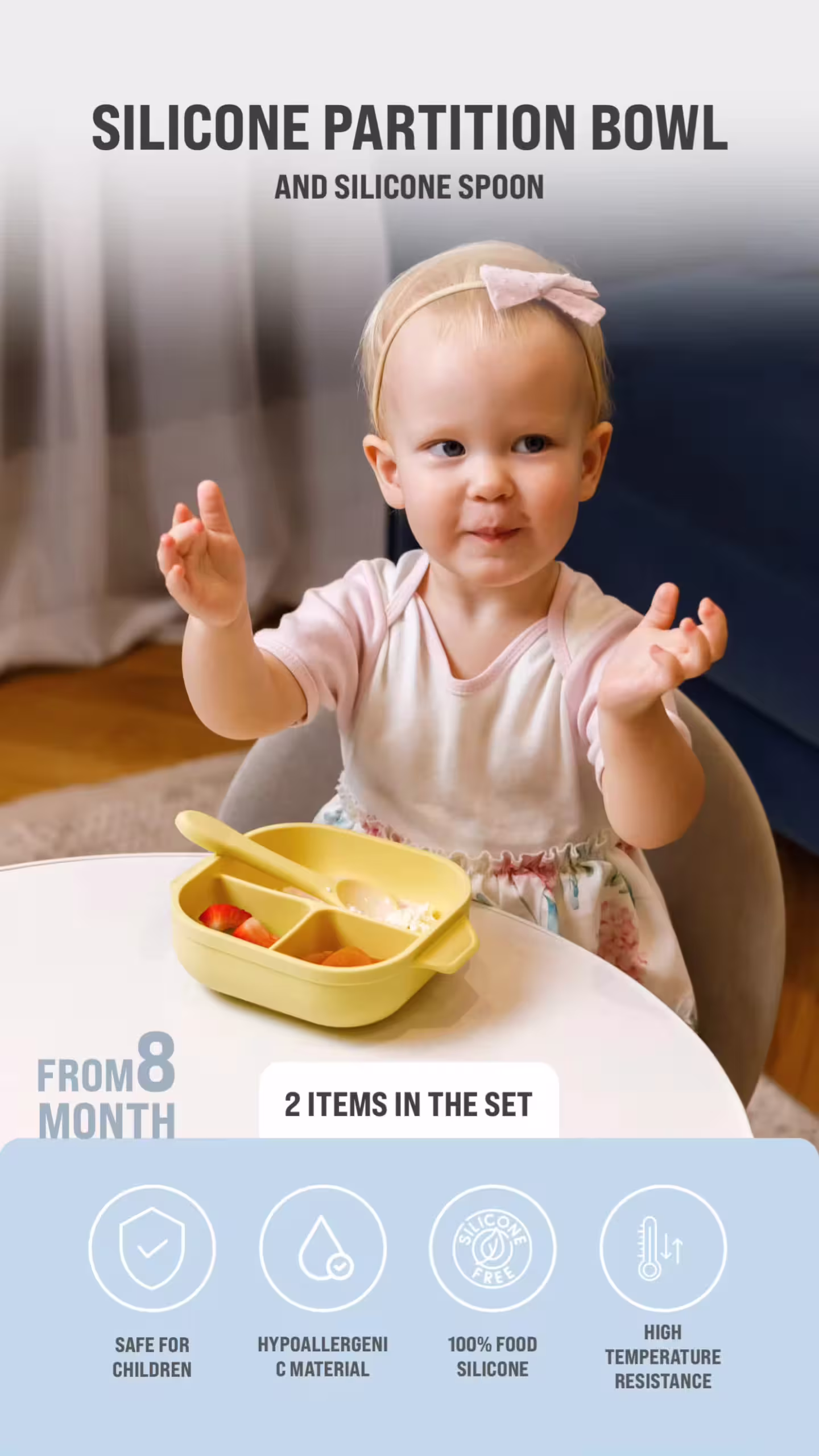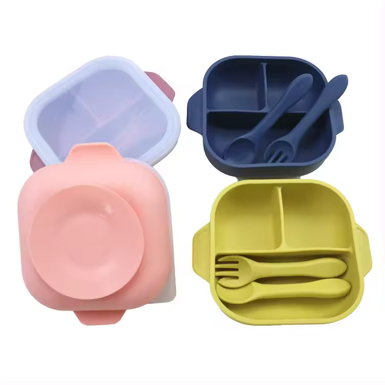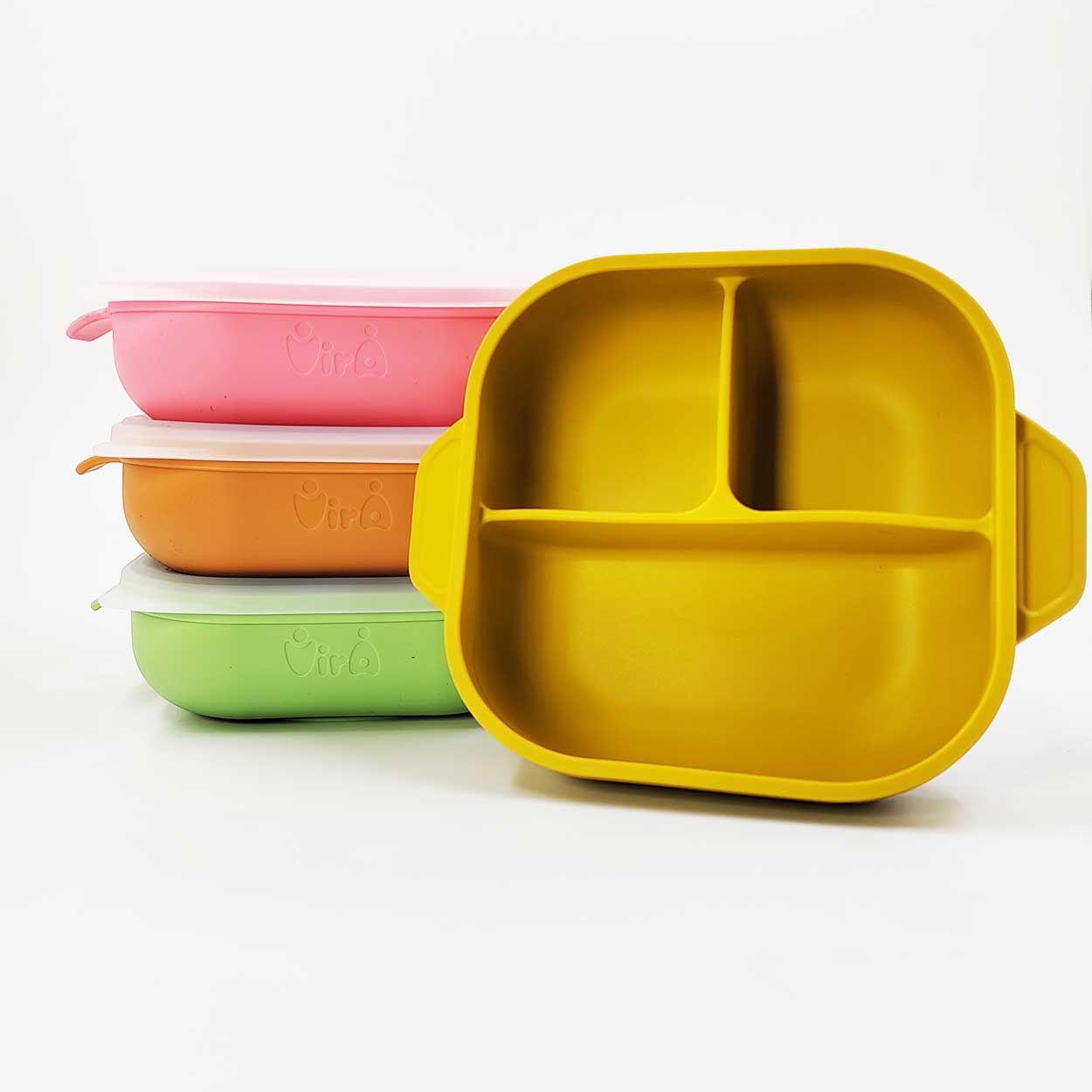 بشقاب مربعی سیلیکونی با درپوش، راهحلی کارآمد و زیبا برای والدینی است که به دنبال راحتی و ایمنی بیشتر در غذا خوردن کودکان خود هستند. 🌟