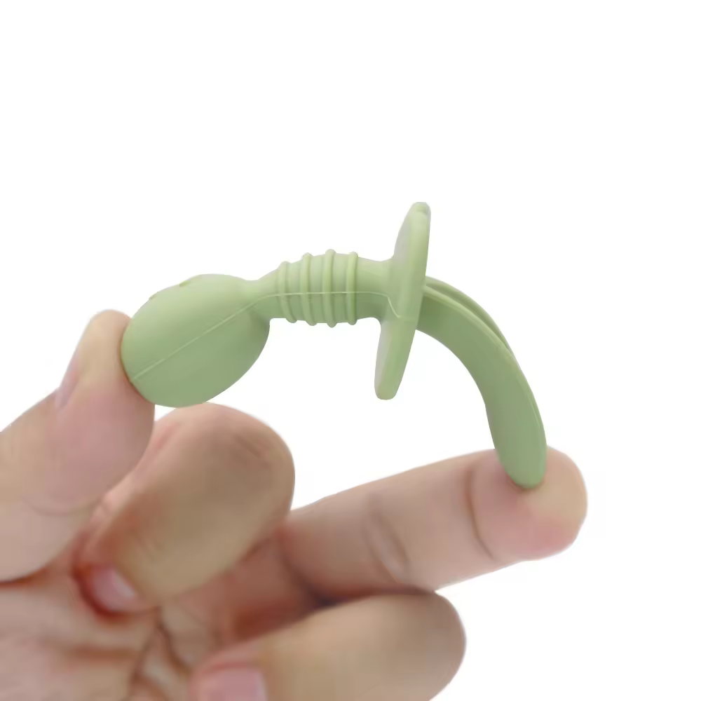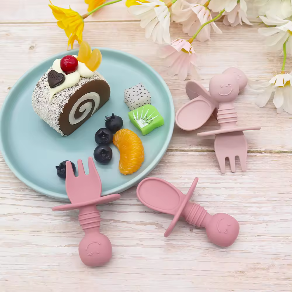 این قاشق و چنگال آموزشی سیلیکونی، با طراحی کوتاه و محافظ ایمنی، به کودکان کمک میکند تا با اطمینان و بدون نگرانی از ناراحتی، غذا بخورند.