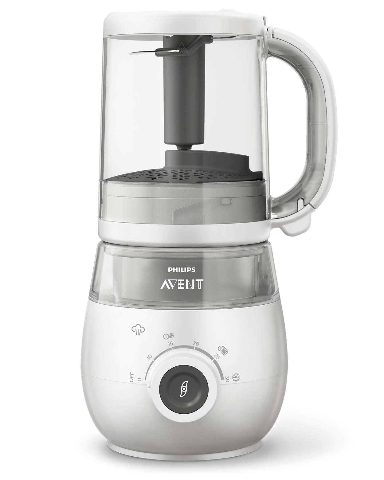 شما با دستگاه غذاساز کودک ۴ در ۱ فیلیپس اونت میتوانید همزمان ۴ عمل ( یخزدایی، بخارپزکردن، مخلوط کردن و گرمکردن) را فقط با یک دستگاه انجام دهید.