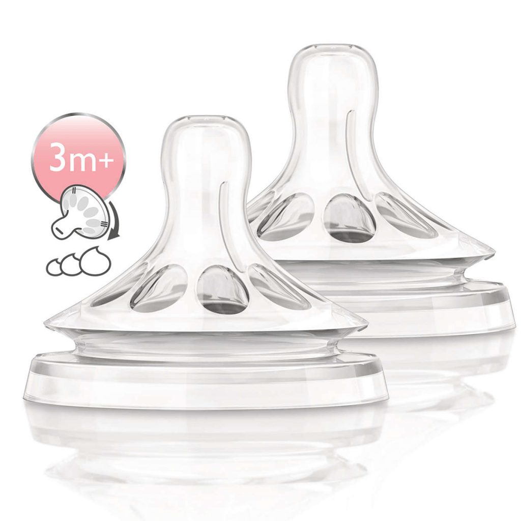 با سرشیشه ی جریان متغیر فیلیپس اونت، شما می توانید جریان شیر را کنترل کنید تا بهترین حالت را برای نوزاد پدید آورید. سه علامت ۱ ، ۲ و ۳ روی سر شیشه مشخص شده که با قرارگیری هر کدام روبروی بینی نوزاد جریان از کم به بیشتر تغییر می یابد. سرعت جریان می تواند با توجه به نیاز و راحتی کودکتان بیشتر شود. درجه سوم این مدل می تواند برای مایعات غلیظ بکار رود.