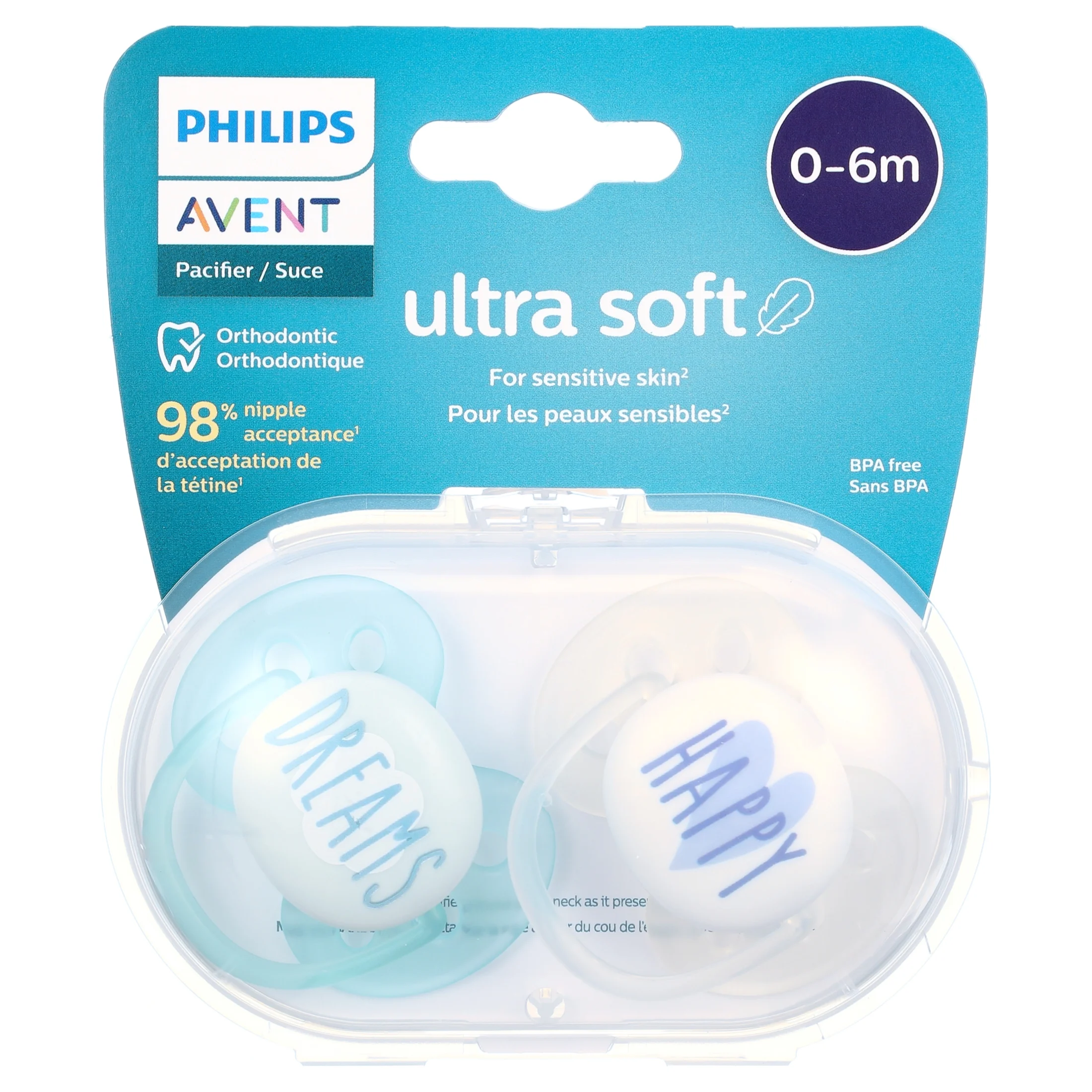 پستانک ارتودنسی ۰ تا ۶ ماه دوتایی فیلیپس اونت PHILIPS AVENT سری UltraSoft مدل SCF224/03