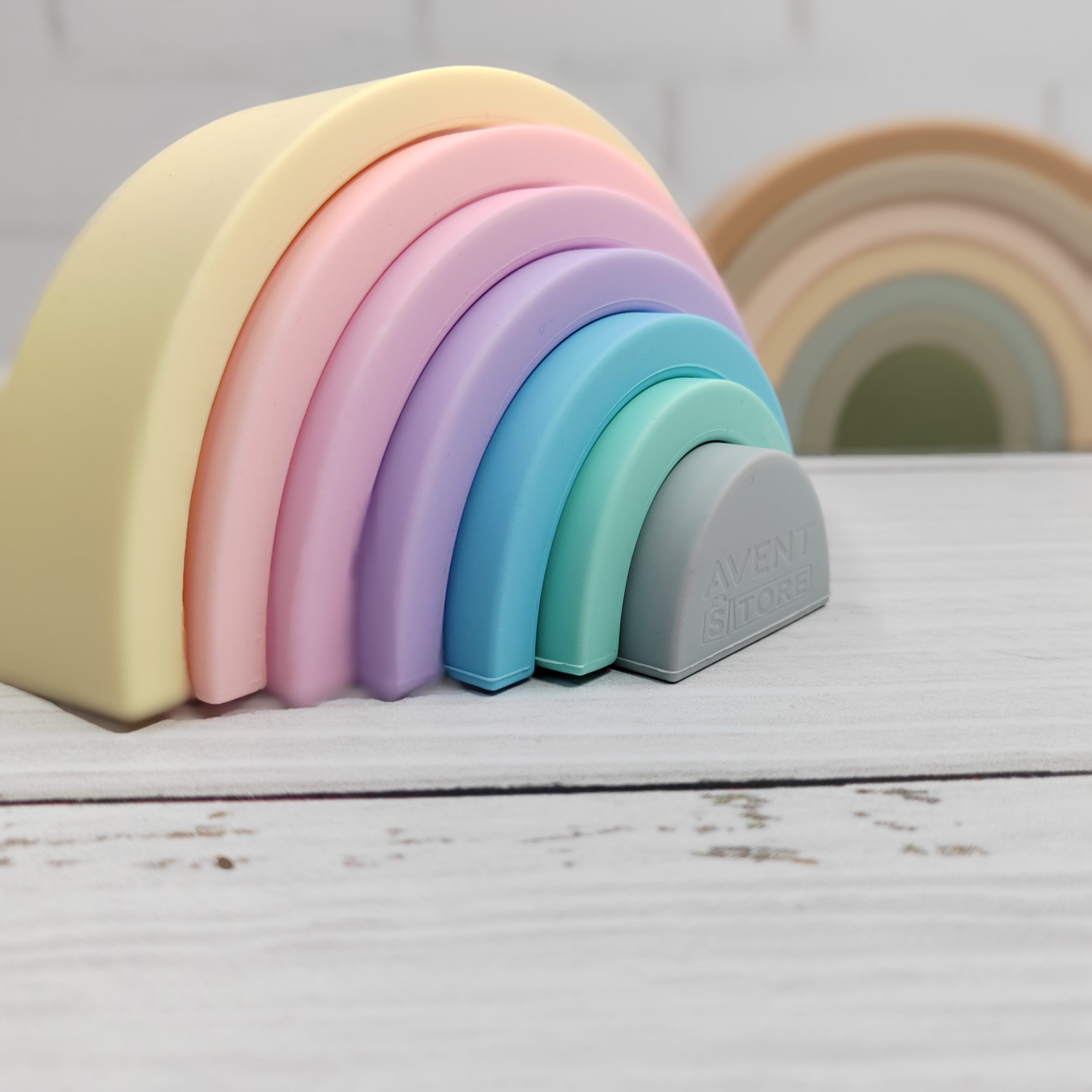 این رنگین کمان سیلیکونی را به عنوان پازل برای بازی و سرگرمی کودکتان میتوانید در اختیار او بگذارید.