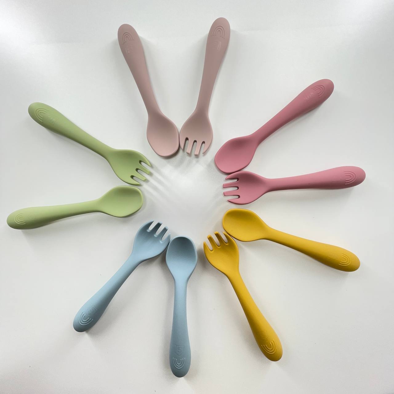 قاشق و چنگال سیلیکونی رنگین کمان، غذا خوردن را برای فرزندتان آسان میکند