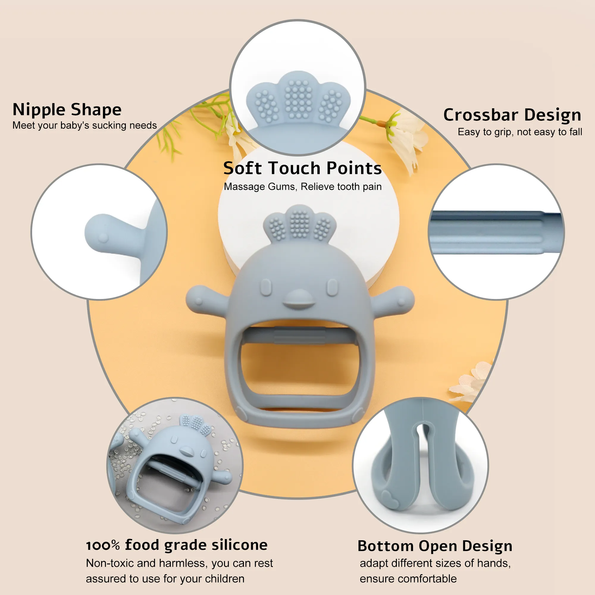 طراحی فانتزی این دندانگیر به گونهای است که کودک به آسانی آن را در دست بگیرد و به لثه بکشد.