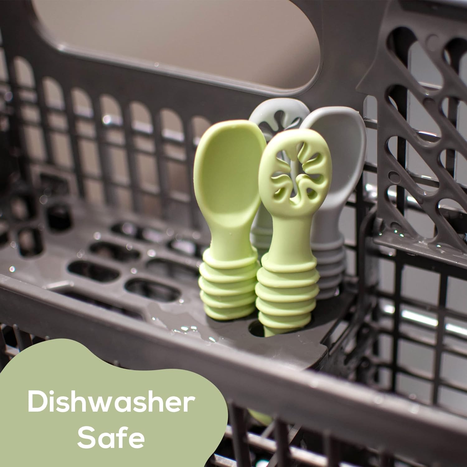 - دسته ارگونومیک: طراحی شده برای دستهای کوچک تا کودکان بتوانند به راحتی قاشق را در دست بگیرند.